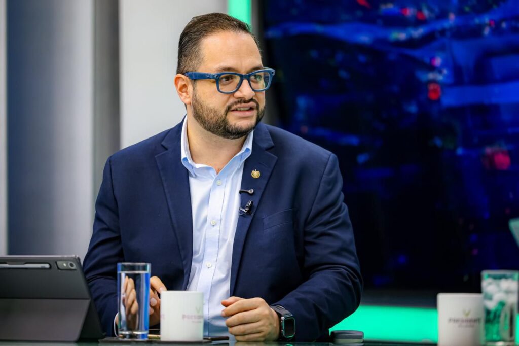 El Secretario de Innovación, Daniel Méndez, detalla los datos del programa de licencias de formación gratis con Platzi, al abogado Julio Valdivieso, conductor del espacio de opinión «Pulso Ciudadano» del Grupo Megavisión.