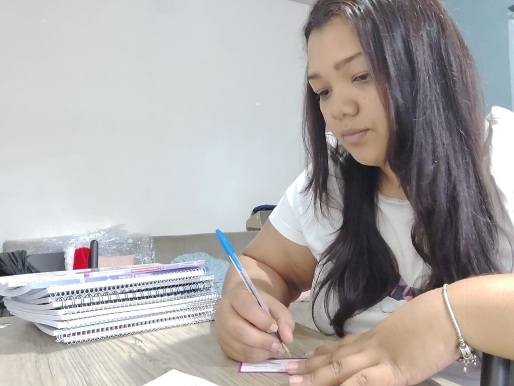 Recuerda que una vez se encontró con dos jóvenes que también ofrecían el servicio en sus tiempos libres. Tenían paquetes, precios según cantidad, tarifas más altas. Thalía no compite desde el abuso ni desde el orgullo: cobra entre 60 y 65 centavos por cuaderno, incluye materiales y trabaja a domicilio.