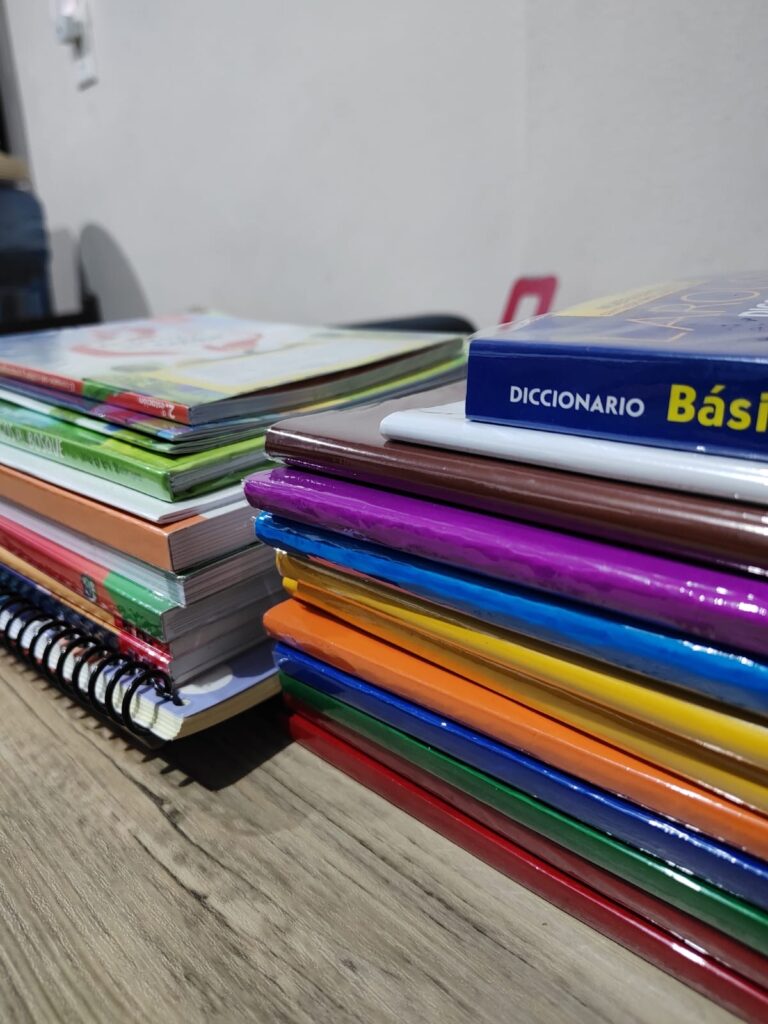 A contraluz, el perfil de medio rostro concentrado. Frente a ella, una mesa. Sobre la mesa, cuadernos, plástico, papel de colores y tijeras. Y unas manos femeninas que, con paciencia y delicadeza, cortaban stickers donde más tarde alguien escribiría un nombre, un grado, una sección, una materia. Manos que forran cuadernos. Manos que, sin saberlo, también forran futuro.